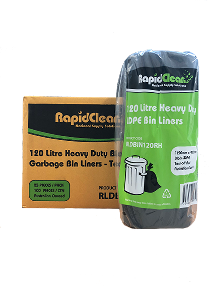 - RAPID CLEAN 120L BLACK HEAVY DUTY BIN LINERS ON A ROLL - R-LDBIN120RH - 25 - ROLL