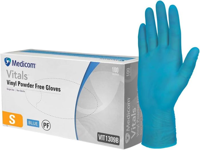 - MEDICOM VITALS VINYL BLUE POWDER FREE GLOVES - SMALL ( 1309B ) - 100 - PKT