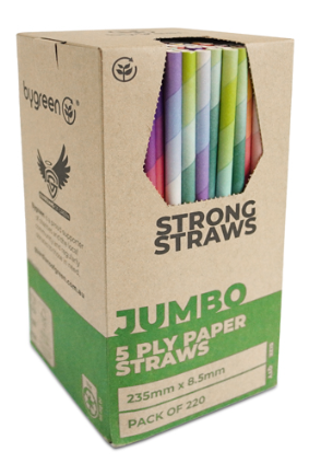 - STRONG STRAWS 5 PLY JUMBO PAPER STRAW - MIXED COLOUR - 8.5MM X 235MM - PAP5PJ22MIX - 2200 - CTN
