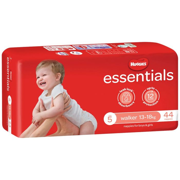 - HUGGIES ESSENTIALS NAPPIES SIZE 5 - WALKER ( 13 - 18KG ) - 21036 - ( 4 X 44 ) - 176 - CTN