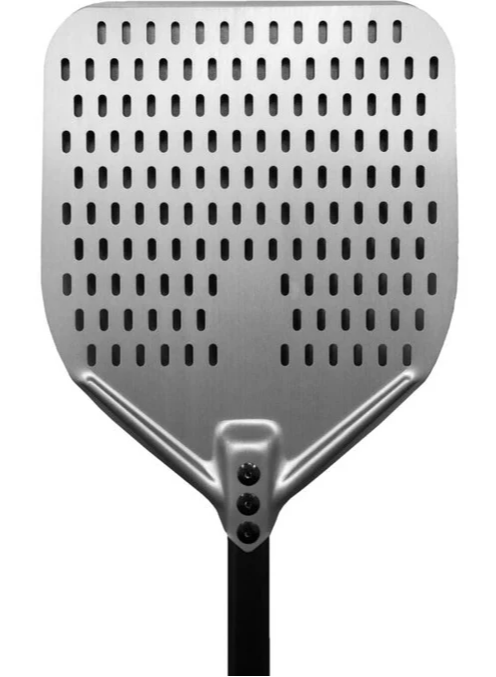REGINA PIZZA PEEL SQUARE PERFORATED ALUMINIUM HEAD WITH BLACK HANDLE