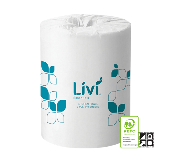 The Livi 1400 Essentials kitchen roll towel offers a 2-ply paper that surpasses your standards for quality, strength, and value. With 240 sheets per roll and made from virgin paper, this absorbent paper towel drys hands effectively and cleans spills at quickly. Individually wrapped paper rolls available in 12 units to a carton