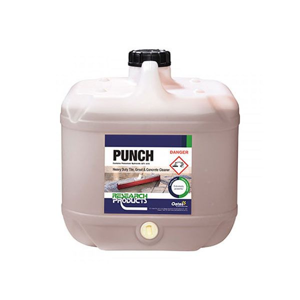 PUNCH is a powerful, highly concentrated detergent for cleaning concrete, ceramic tiles, quarry tiles, porcelain and porous stone where it is common for soil to build up in the micro pores of the surface or collect in the ?hills and valleys? and grout. Regular cleaning procedures do not prevent the build-up or greying of the surface therefore the aggressive cleaning action of PUNCH penetrates into the pores to lift out old dirt. The results will be immediate, especially when auto scrubbing. Ideal for use in shopping centres, tiled washrooms and toilets, shower blocks, commercial kitchens, restaurants and car parks.