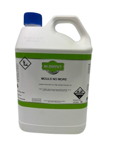 Mould No More is a Mould Killer, Cleaner & Sanitiser. Ideal to remove fungi, moulds and body fats. Can be used on Ceramics, Porcelain, Stainless Steel, concrete and more. Ideal for indoor & outdoor applications such as house cleaning, paths & driveways.