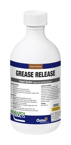 Grease Release is a high performance multi-purpose free rinsing spotter for removing oily or tar like stains from carpet and clothing prior to extraction, rotary shampooing or laundering. Some inks, most paints, chewing gum and latex adhesive are softened by Grease Release allowing them to be scraped up