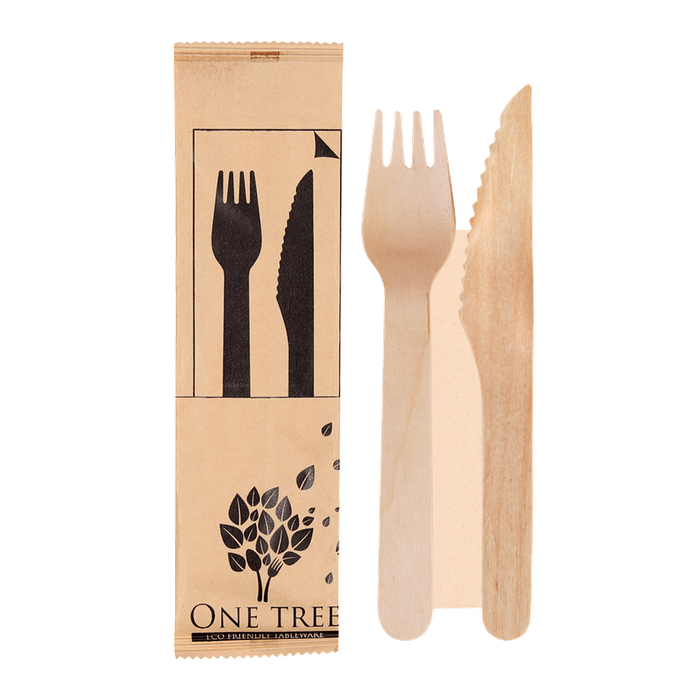 ONE TREE - WOODEN CUTLERY SET FORK / KNIFE / NAPKIN SET - 400-CTN
