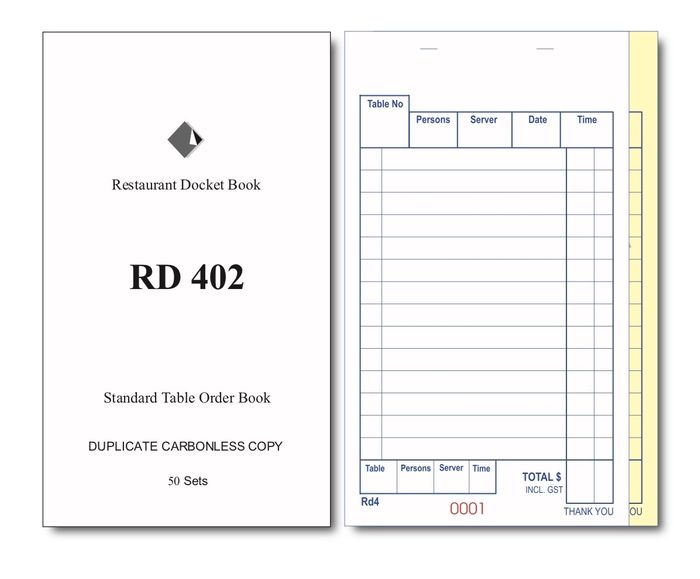 RD402 DUPLICATE CARBONLESS DOCKET BOOK -100 -CARTON