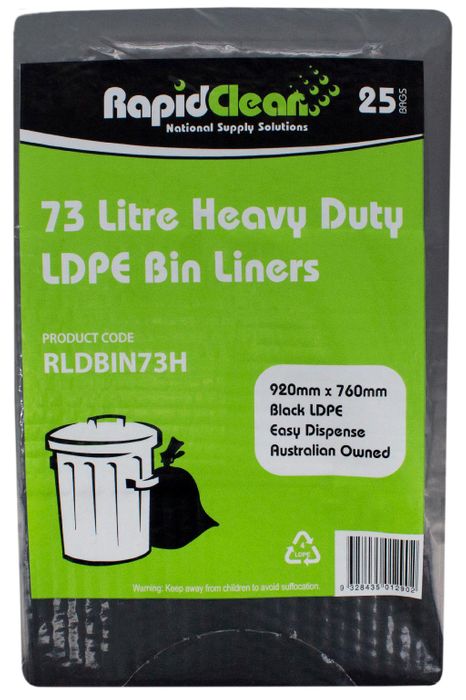 - RAPID CLEAN 73L LDPE BLACK HEAVY DUTY BIN LINERS -25- SLV