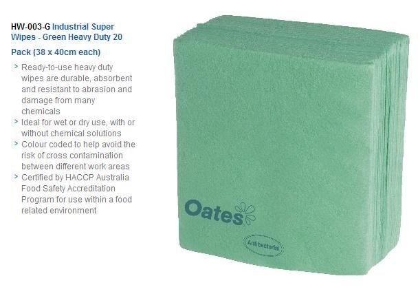 - OATES INDUSTRIAL SUPER WIPES GREEN - 38CM X 40CM - 5 X 20 - CTN