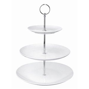 - OLYMPIA AFTERNOON TEA STAND 3 TIER PORCELAIN & STAINLESS ROD - GG881 - EACH