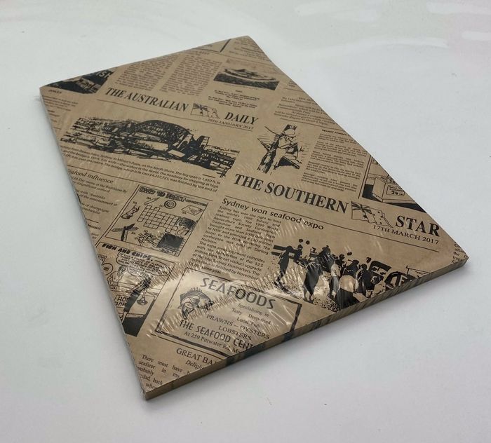 - BROWN 'AUSTRALIAN DAILY NEWS PRINT' PRINT GREASE PROOF PAPER - 200 X 300MM ( 1/4 CUT ) - 20 - CTN
