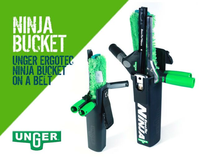 Redesigned and upgraded, Bucket-On-A-Belt holds all the tools a window cleaner needs ? a washer, two squeegees if required, safety scraper plus the essential cleaning fluid. Made of light durable plastic and snaps onto The Unger Belt (sold separately).