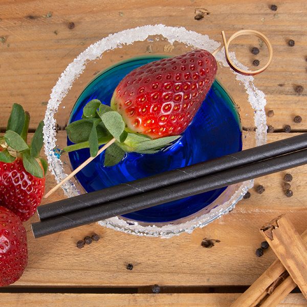 - ECO-STRAW PLAIN BLACK 3 PLY COCKTAIL PAPER STRAWS - 135MM X 6MM - 250 - PKT