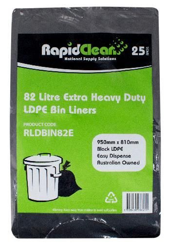- RAPID CLEAN 82L BLACK EXTRA HEAVY DUTY BIN LINERS - 25-PKT