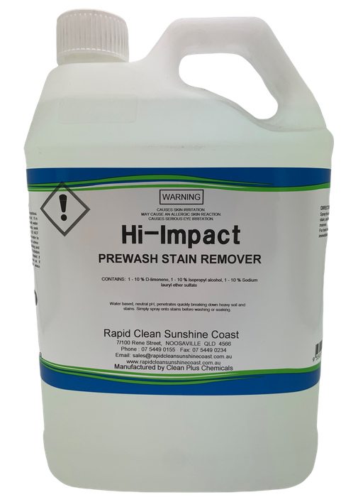 Water based, neutral pH, penetrates quickly breaking down heavy soil and stains. Simply spray onto stains before washing or soaking.